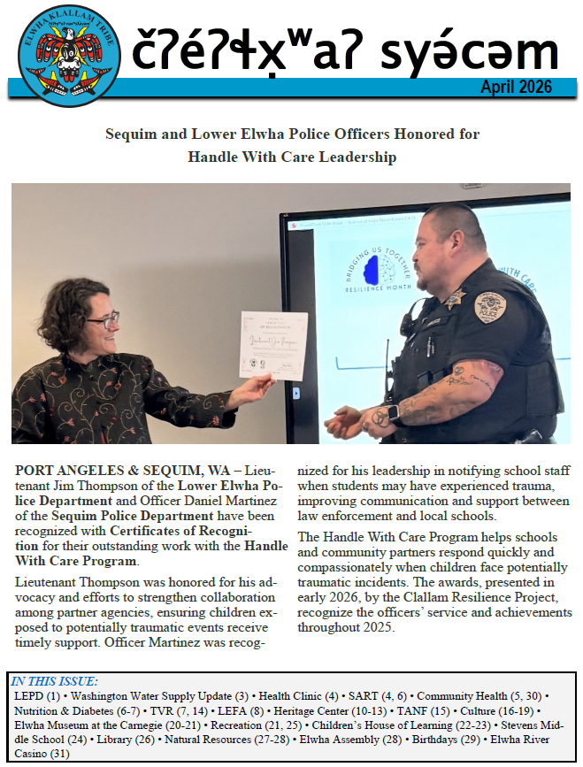 For the archived newsletters visit the following page: https://www.elwha.org/newsletters/